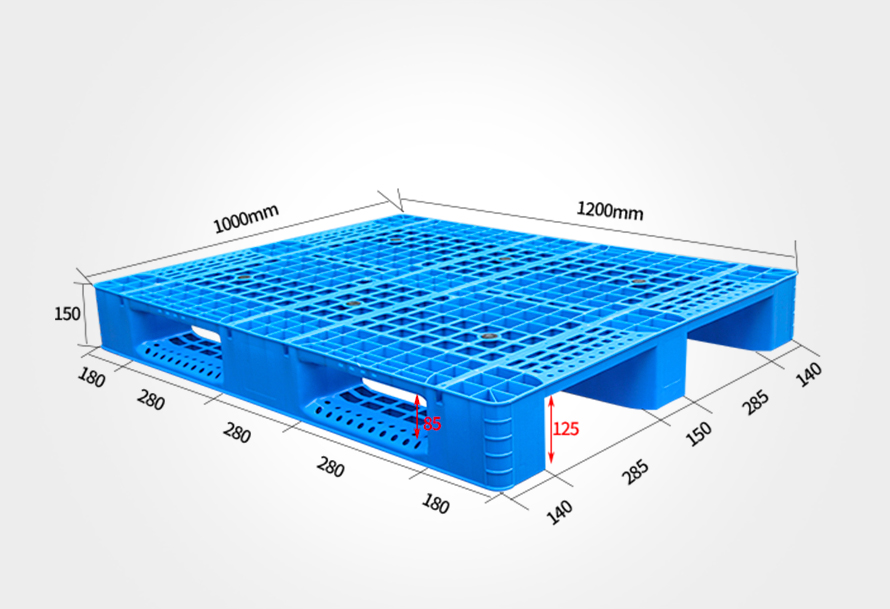而吹塑雙面托盤因其靜載6噸,動載2噸的超強承載力,以及耐候性好、抗壓、耐磨、使用壽命長等特點,主要用于重型貨物堆碼,物流高頻周轉等環節。